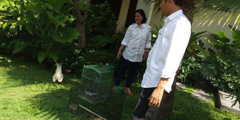 Setidaknya, 10 ekor burung, mulai dari burung parkit, jalak, perkutut, hingga cucok rowo serta dua ekor ayam meramaikan suasana jika beraktivitas di halaman belakang itu. "Ini, istri saya suka nongkrong di pasar burung dekat sini. Tapi dia sukanya beli-beli yang murah-murah," ujar Jokowi.